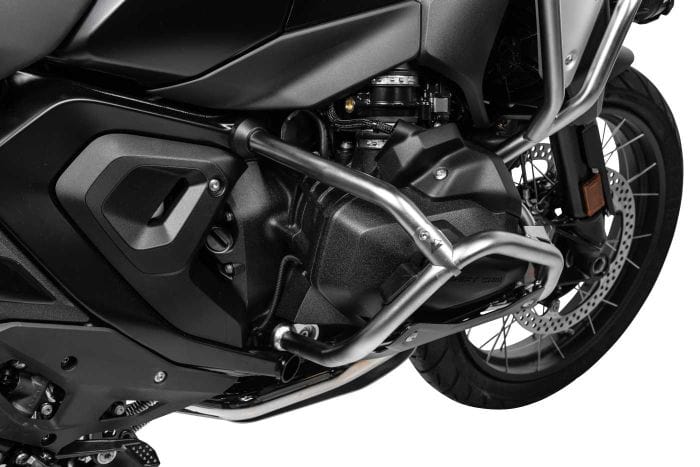 Geef je BMW R1300GS of Adventure de bescherming die hij verdient met deze speciaal ontworpen versterkingsstang van Touratech. Deze extra steun creëert een vierde bevestigingspunt aan de originele BMW motorvalbeugel en vormt zo een echte beschermkooi rond de kleppendeksel en cilinderkop. Ideaal voor rijders die hun GS ook off-road gebruiken.