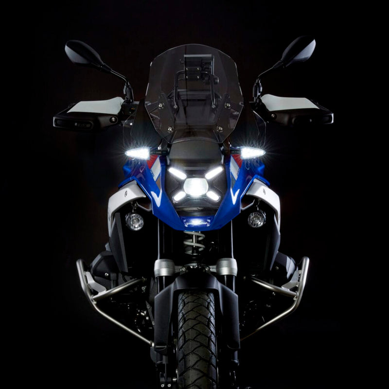 De EXTREME EVO LED-voorlichtset, voor de BMW R 1300GS/A (vanaf 2023) en BMW R 1250GS/A (vanaf 2021), combineert ultraheldere witte rijverlichting met amberkleurige richtingaanwijzers, aangedreven door OSRAM automotive LED’s. De set vervangt de originele voorste richtingaanwijzers en is volledig compatibel met het BMW CAN-bus systeem (PWM-signaal). Deze upgrade verhoogt de zichtbaarheid aanzienlijk zonder aan stijl in te boeten.